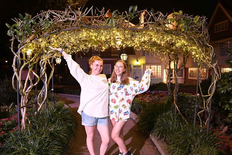 And so it was time to head out of the park, but my sister and I quickly stopped off for several Photopass pictures under these adorable fairy lights in the UK pavilion. We honestly thought it was a picture perfect setting in a place we love to call home.